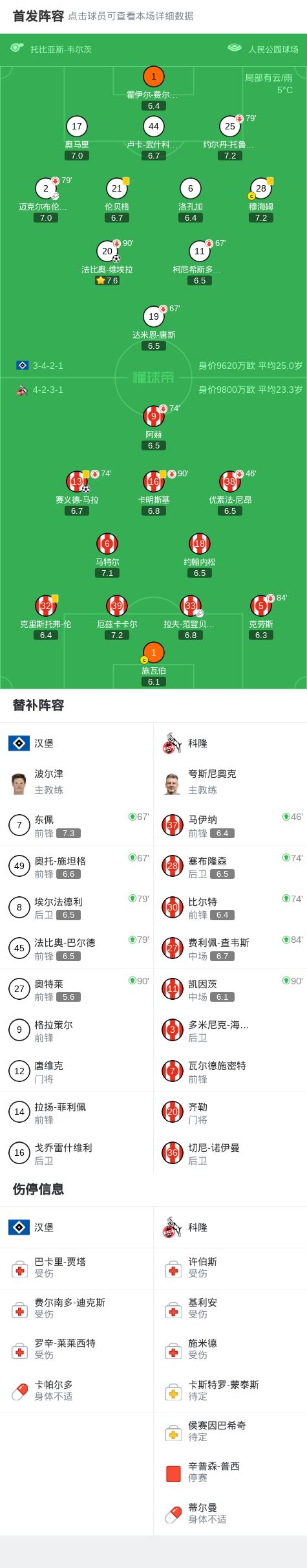 北京時間3月15日德國足球頂級聯賽 聯賽 第26輪,漢堡主場對陣科隆。漢堡法比奧-維埃拉破門。科隆賽義德-馬拉破門。最終比分漢堡 1-1 科隆。