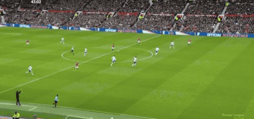 第43分鍾,梅努大步流星發動快速反擊,B費兜射遠角,皮球沒能命中目標。
