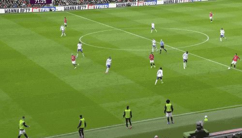 3分鍾後,曼聯在前場打出精彩配合,梅努策動進攻,B費的斜傳落點精準,達洛特拍馬趕到,可惜射門放了高射炮。