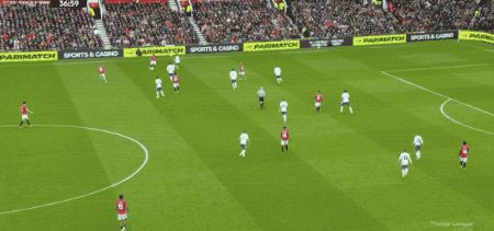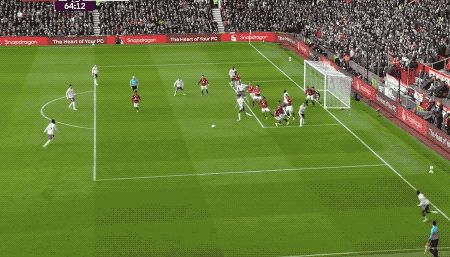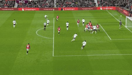 第21分鍾,B費開出角球,馬奎爾頭球擺渡,阿瑪德的頭槌攻門力量十足,馬丁內斯奮力將球擋出。
