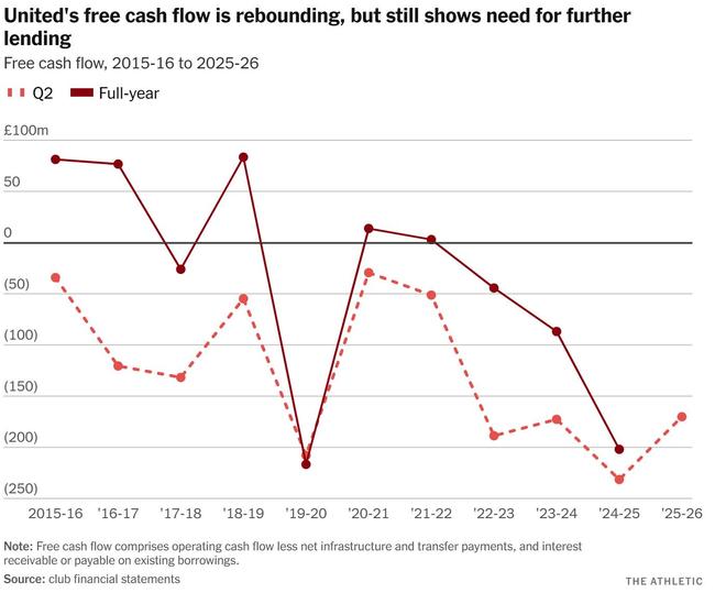 拉特克利夫一年前最引人注目的說法是,如果沒有他上任後采取的措施,曼聯“到聖誕節(2025年)時就會沒錢了”。這是一個有爭議的、聳人聽聞的言論——尤其是因為曼聯是上市公司,且未向股東預告即將發生的財務崩潰——但在誇誇其談之下,確實有幾分道理。曼聯不能繼續沿著老路走下去,至少在沒有外部幫助的情況下不行。